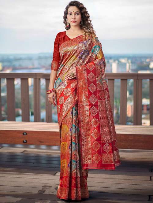 - » women's self design red colored saree