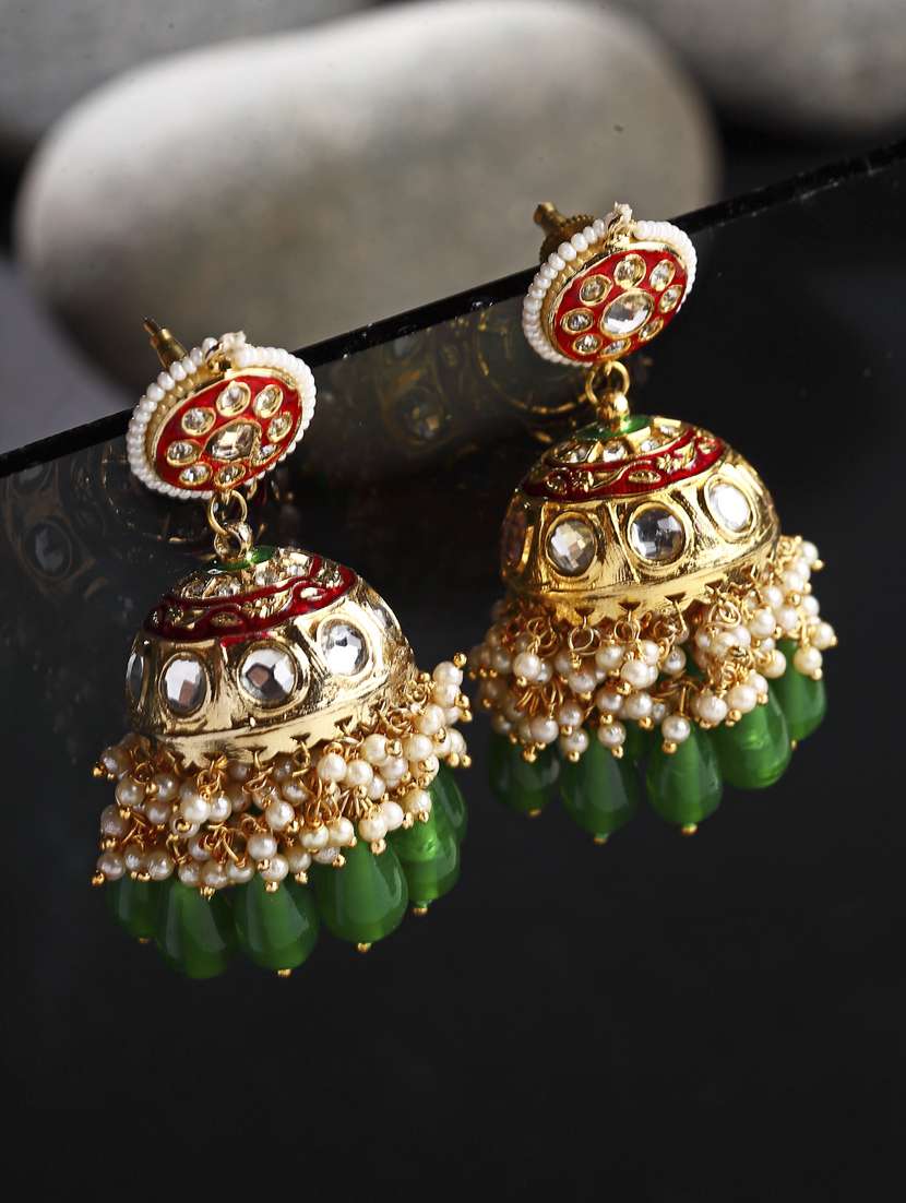 red silver jhumka earring