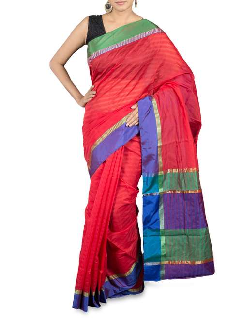 - » red striped cotton saree