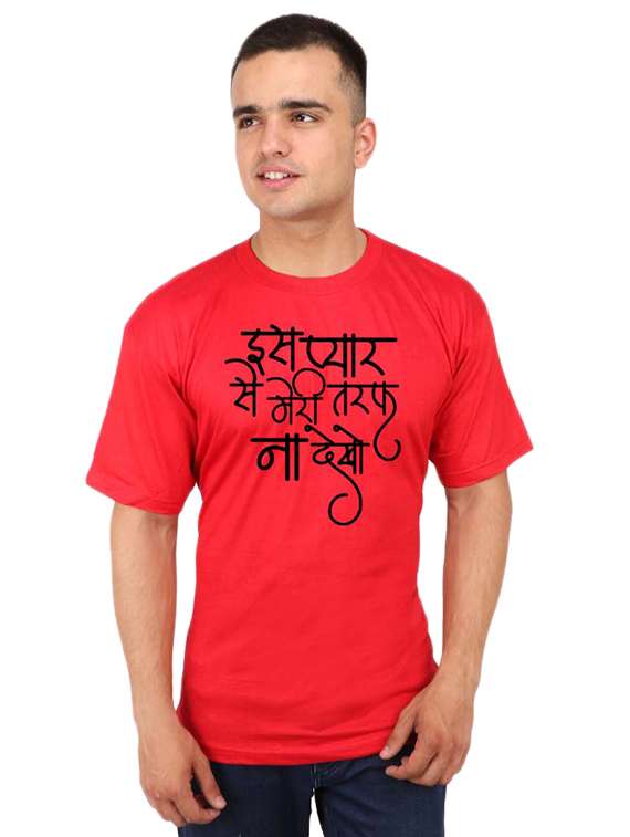 red typographic chest printed t-shirt