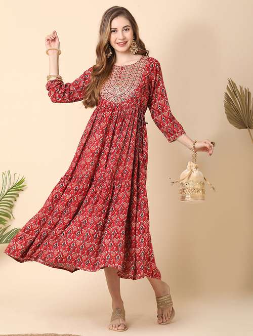 - LimeRoad brings to you the classic range of viscose ethnic dresses handcrafted with embroidered art to give you an effortless traditional look.