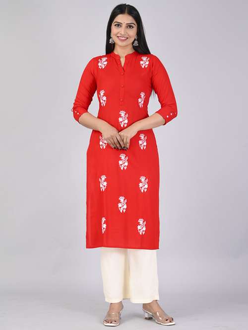 red embroidered kurta palazzo set