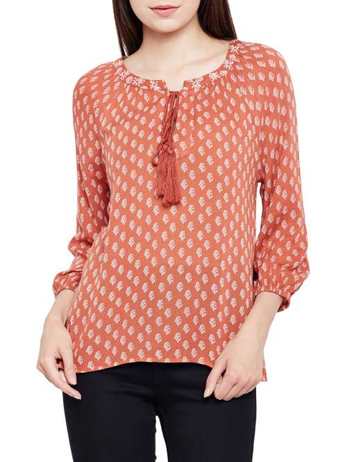 - » tie knot neck printed top