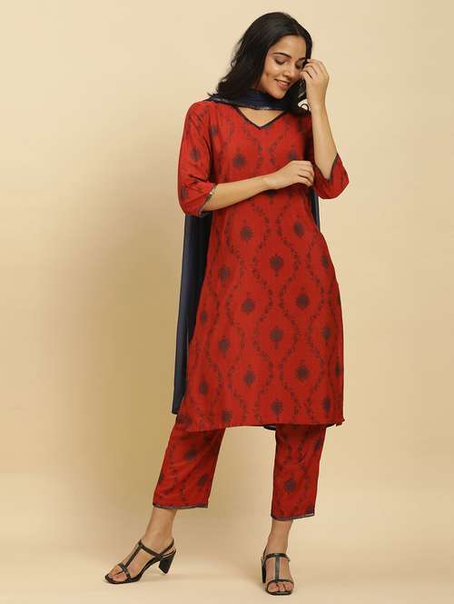 - » red three quarter sleeve suit set
