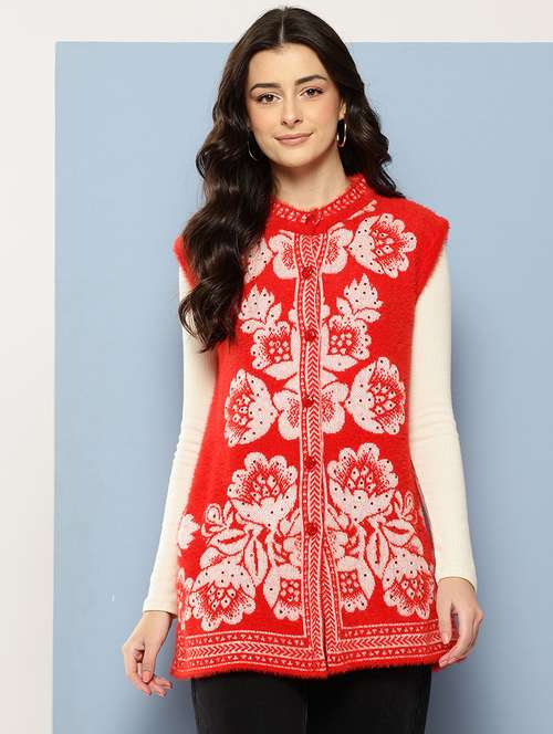- » women self designed sleeveless cardigan
