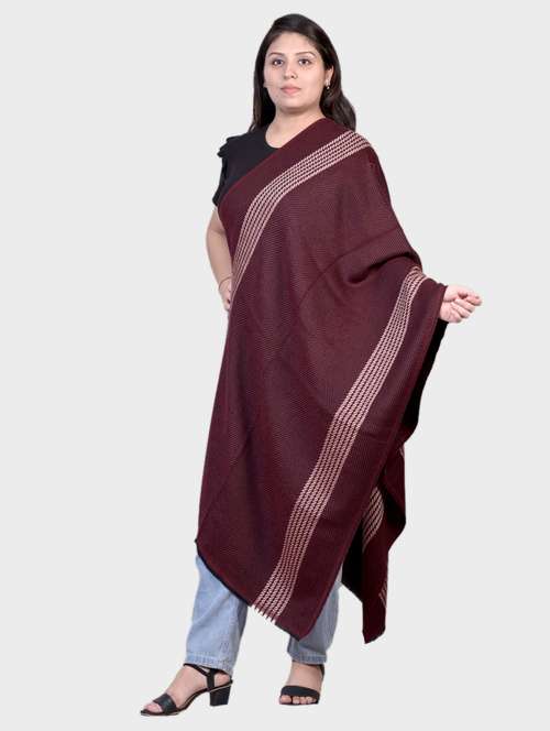 - Add red colors to your winter collection with the comfortable variety of shawls made of wool materials starting at ₹1059 price range.