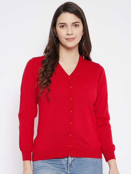 - » red solid woolen cardigan