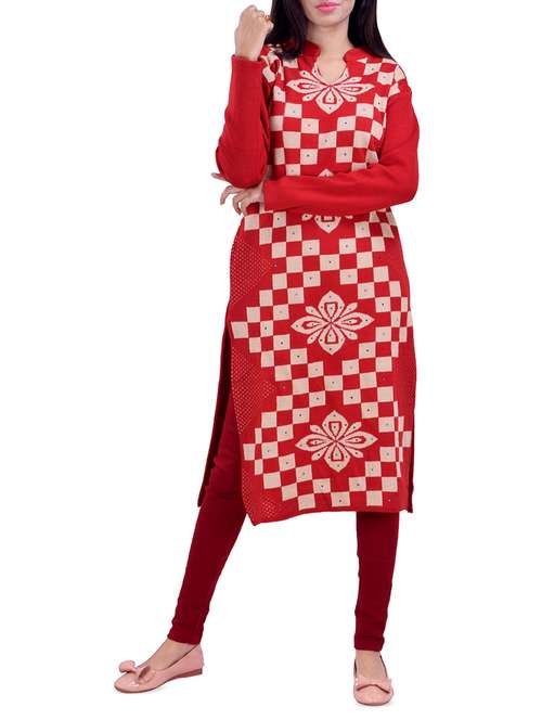 - Now, you can look stylish in winters too! Check out the woollen kurtas available at LimeRoad from CLYMAA in red colours.