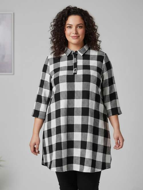 - » women checkered three quarter sleeve woolen kurti