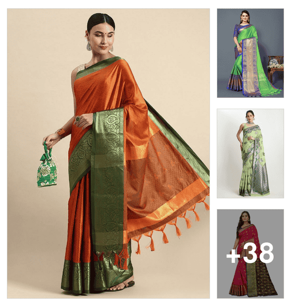 These are made in Tamil Nadu in India and are characterized by the exceptional quality of silk that is used. These sarees use golden-silver thread that is known for the sheer elegance to the fabric.