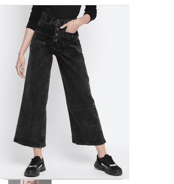 women solid high rise wide leg jean
