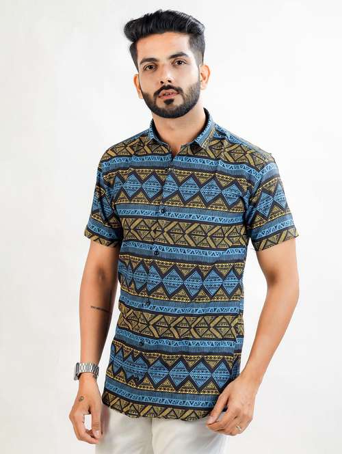- » men printed collared short sleeve regular fit shirt