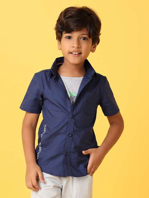 boys blue solid short sleeve shirt