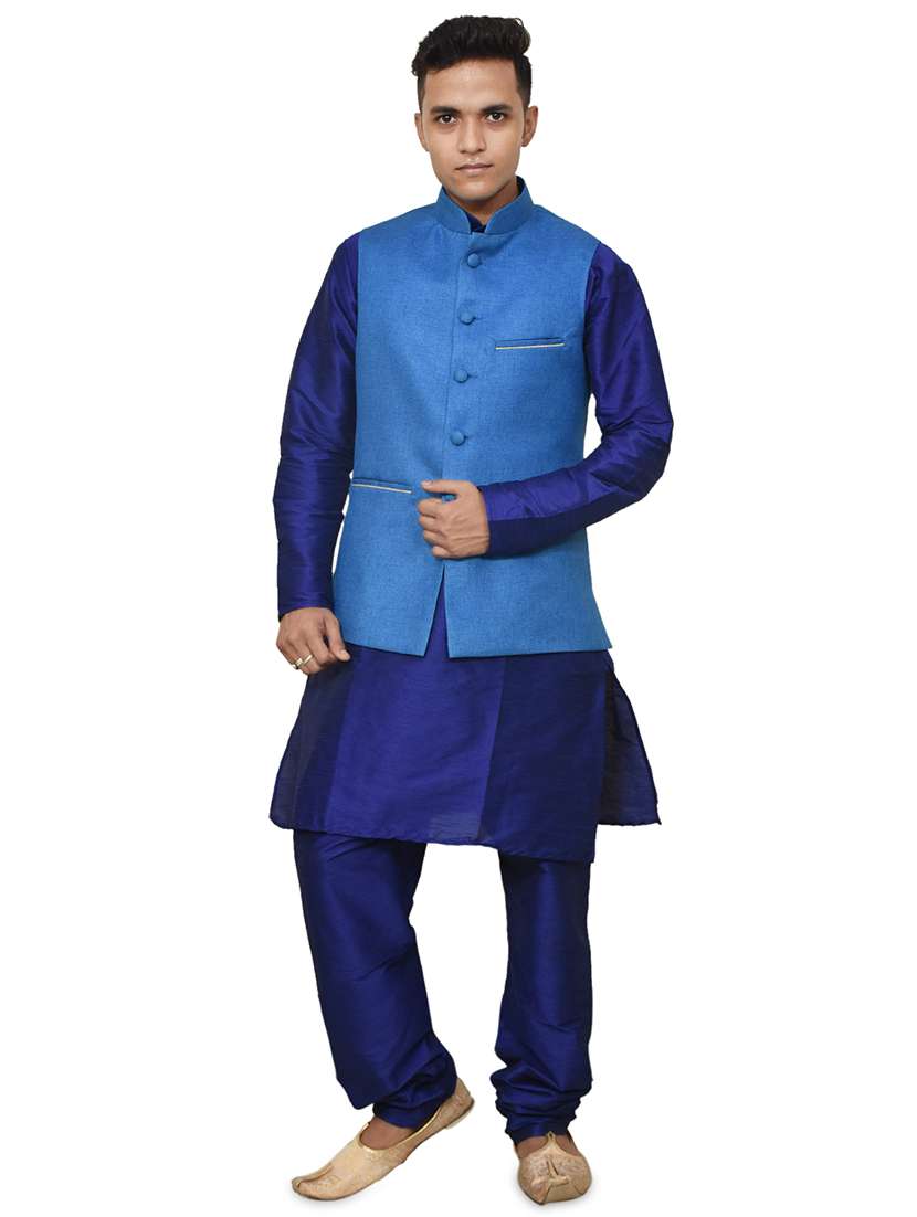 - » royal blue silk blend kurta pyjama with jacket ethnic wear set