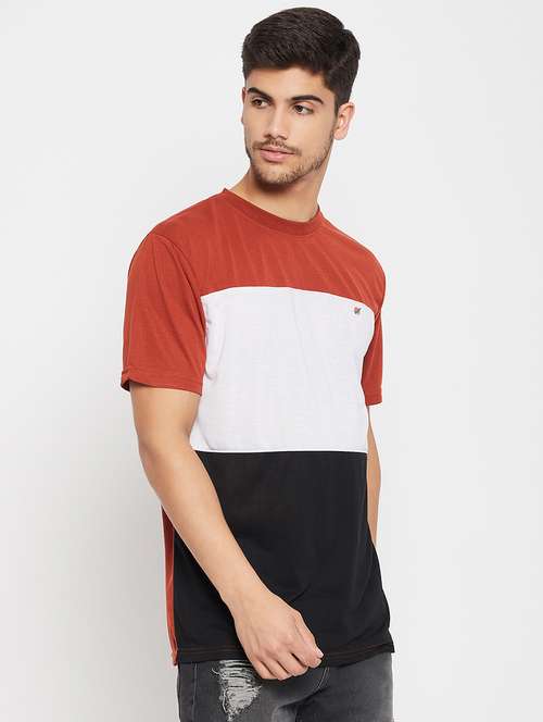 rust polyester color block tshirt