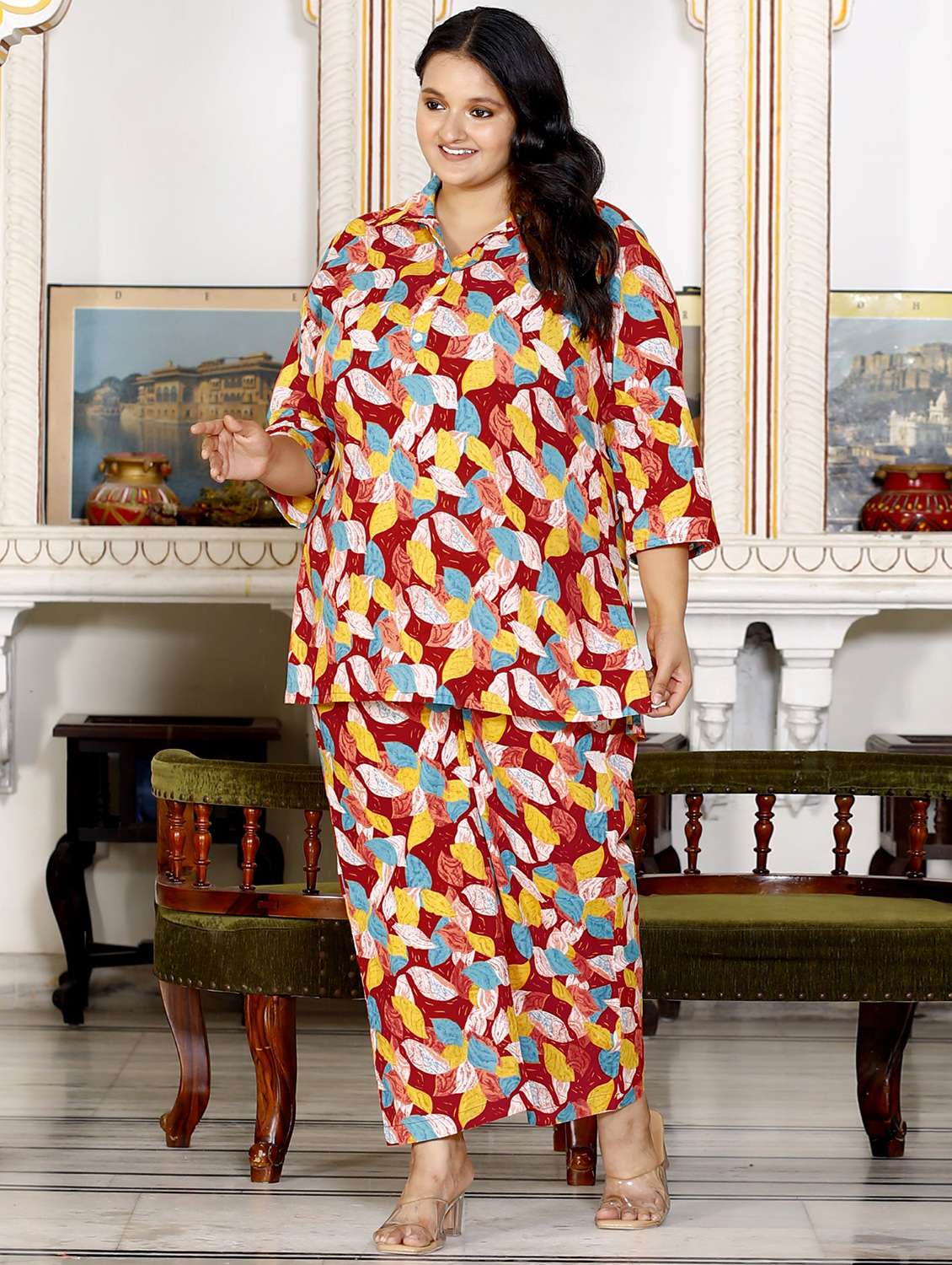 - » women three quarter sleeve plus size ethnic co-ord set