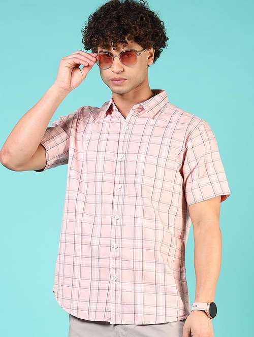 - » men checkered short sleeve regular fit casual shirt