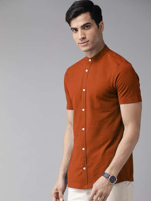 rust solid mandarin neck regular fit t-shirt - 20149977 -  Standard Image - 0 rust solid mandarin neck regular fit t-shirt - 20149977 -  Zoom Image - 0