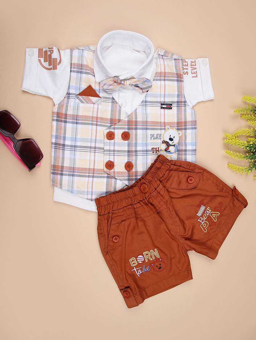 boys checkered shirt & shorts casual wear set