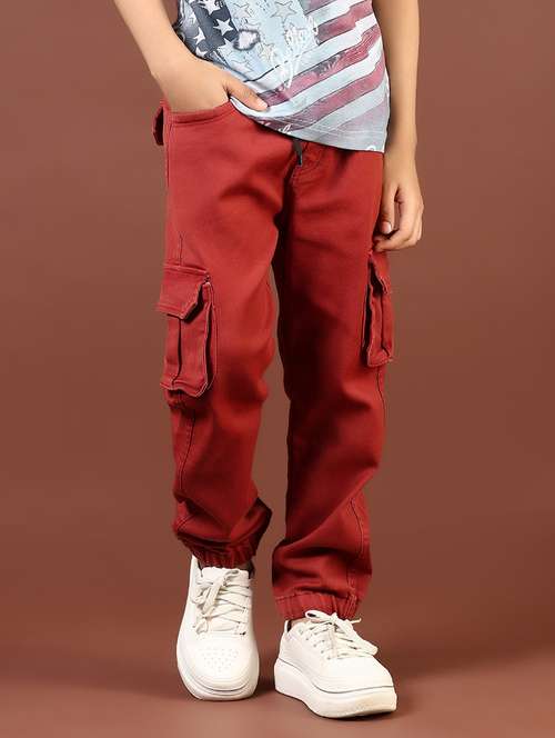 boys rust mid rise plain jogger cargo