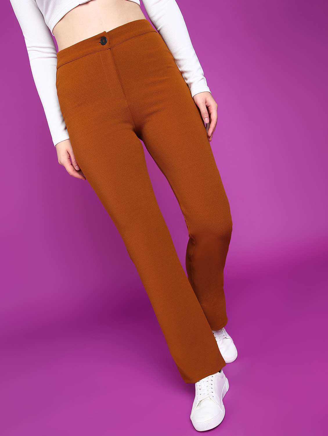 - » women solid high rise bootcut trouser
