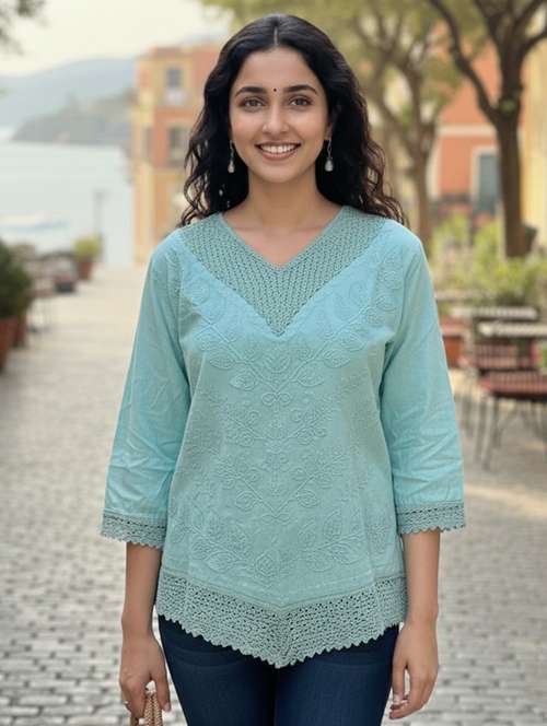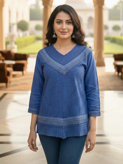 - » women embroidered three quarter sleeve kurti