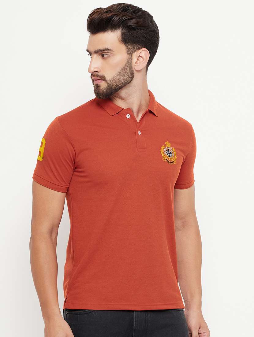 - » men solid rust polyester polo t-shirt