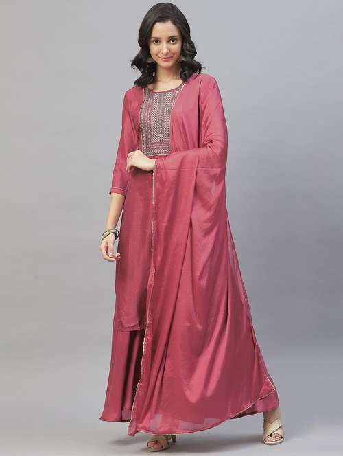 - » women round neck kurta palazzo set with dupatta