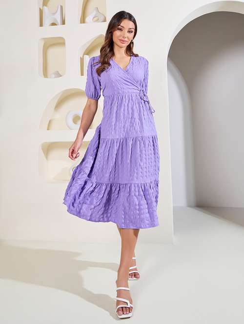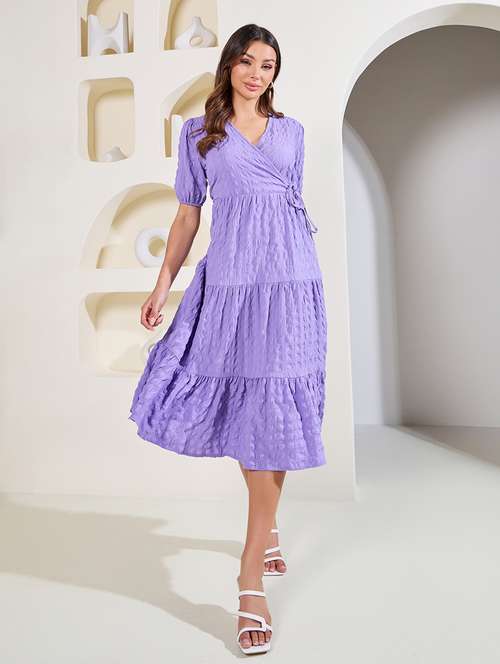 - Dress up in a soothing pattern and don this dress made of polyester material.
