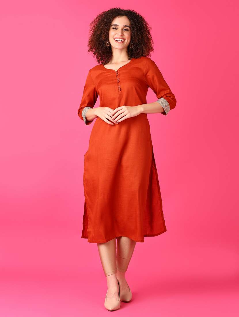 - » women solid three quarter sleeves straight kurta