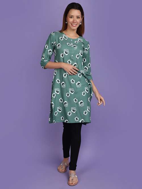 women green round neck straight kurta