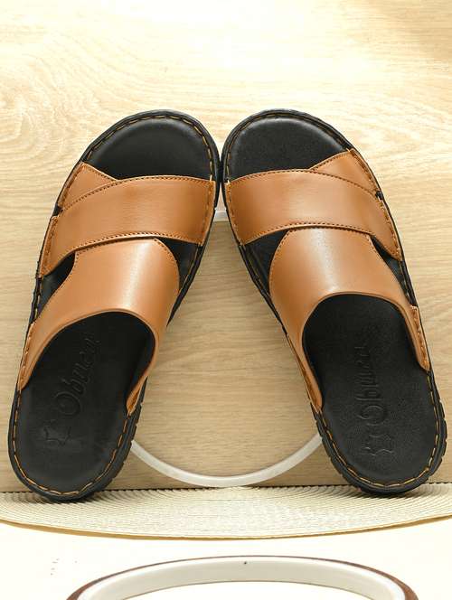 men brown solid slip on sandal