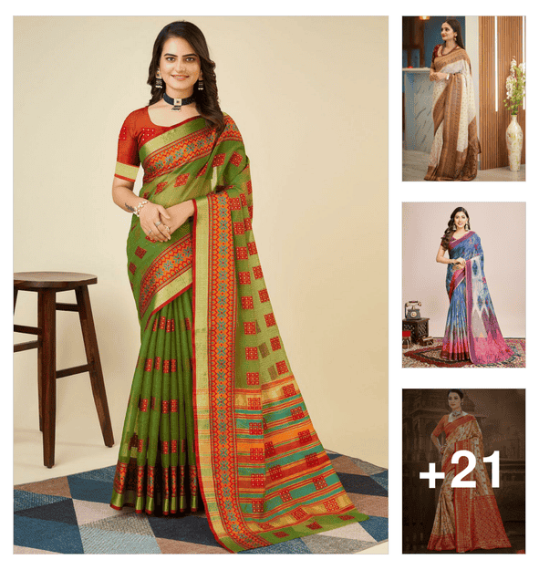 women printed casual wear saree with blouse