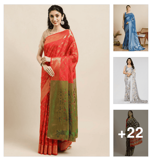 women floral banarasi saree with blouse
