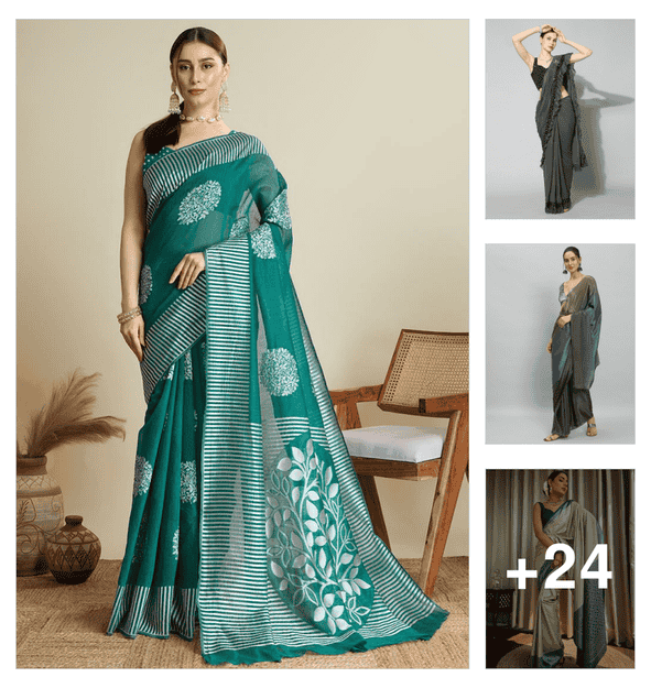 women printed casual wear saree with blouse