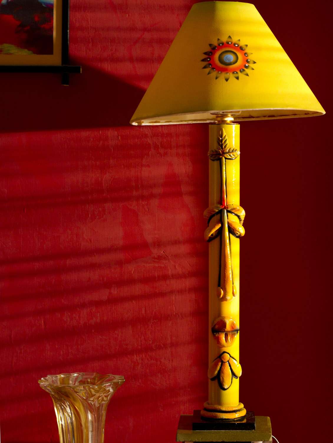 yellow tribal man fiber table lamp