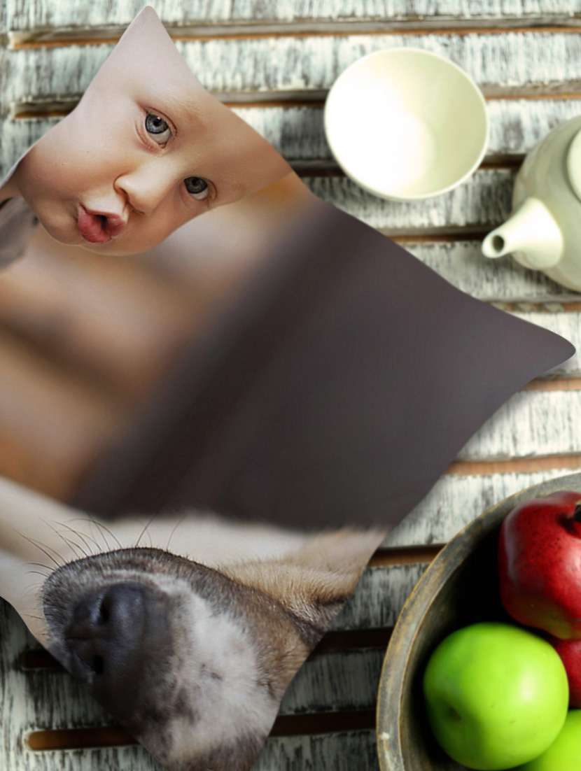 baby with dog cushion cover