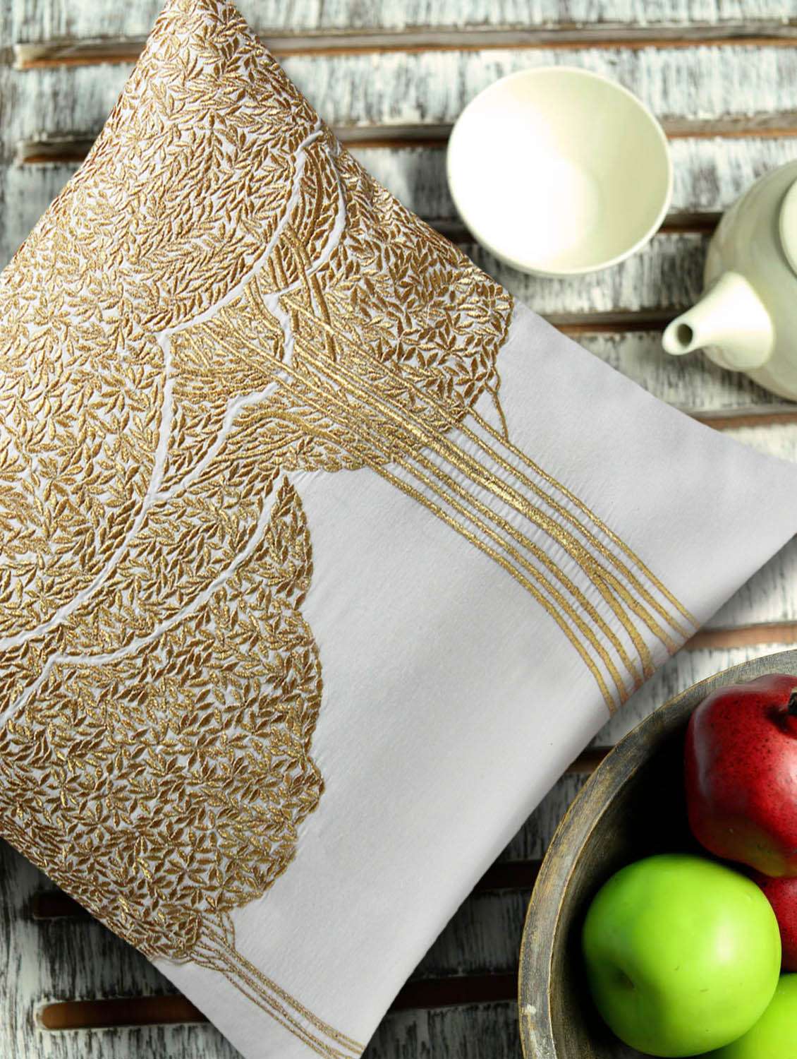 #1 bodhi tree embroidered, white and gold cushion cover & similar products...
