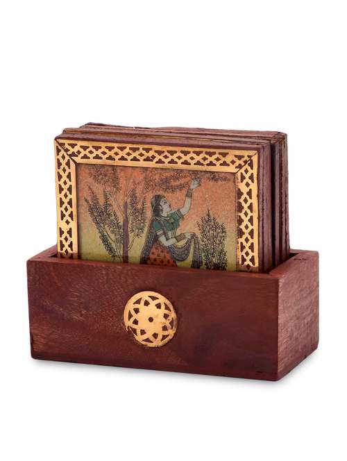 #1 brown wooden painted tea coasters and holder & similar products...