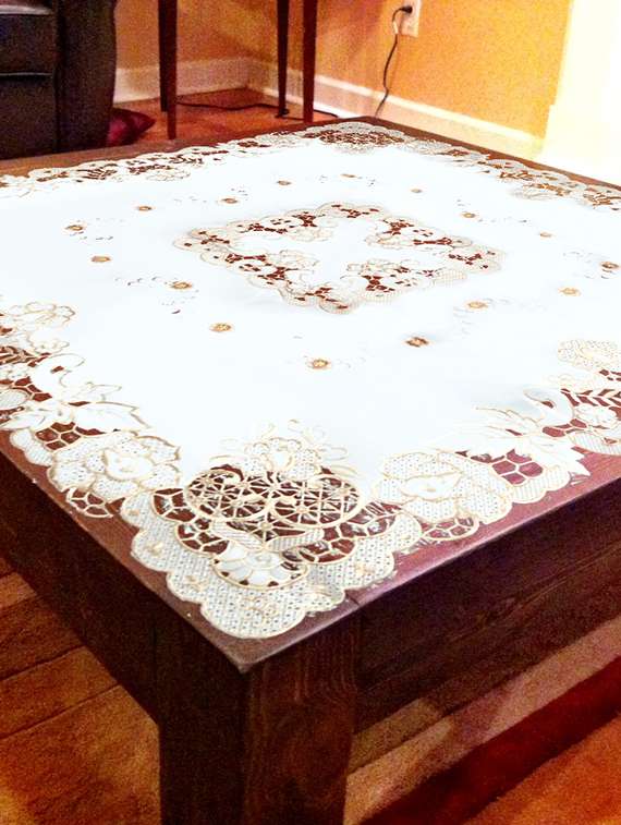 #1 cream colored table cloth with embroidered lace & similar products...