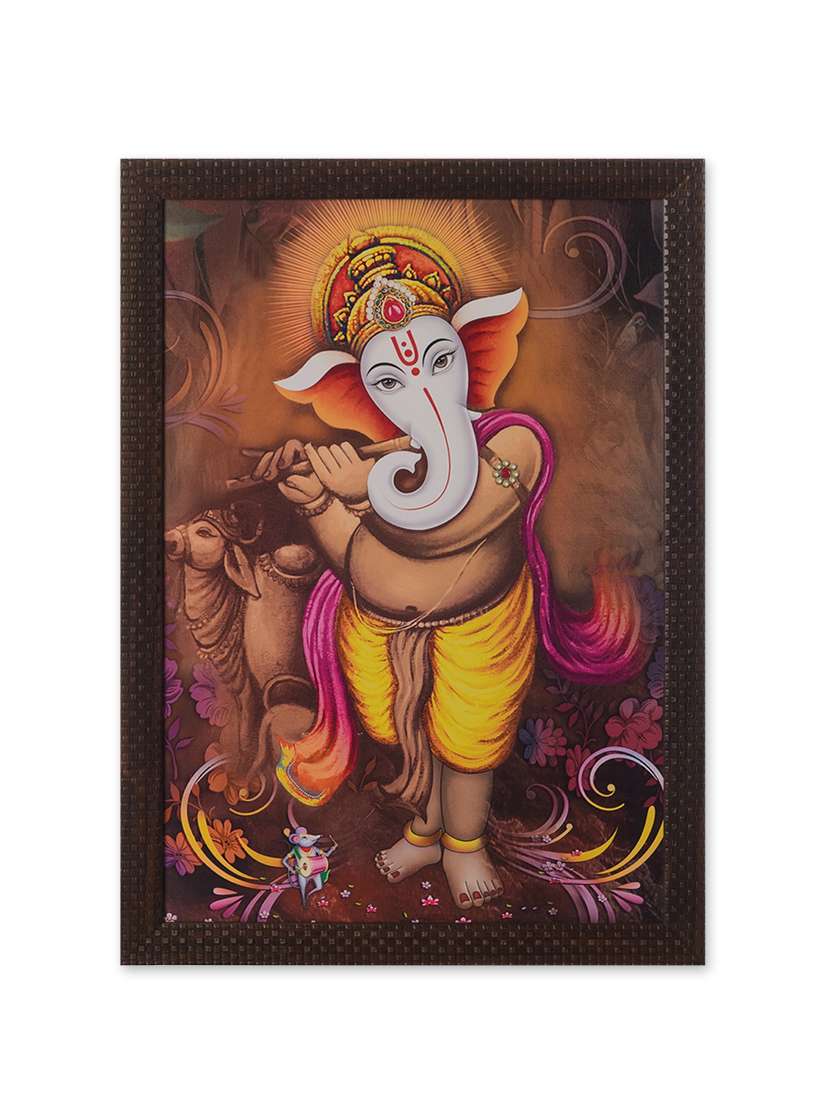 #5 ecraftindia ganesha playing flute satin matt texture framed wall hanging & similar products...