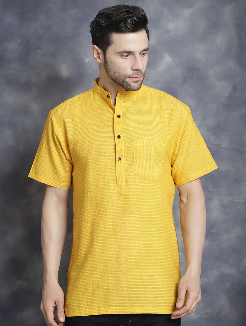 men mandarin neck striped short kurta