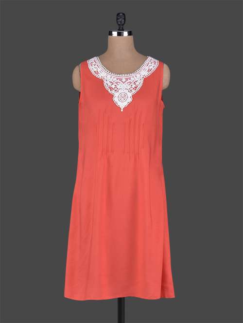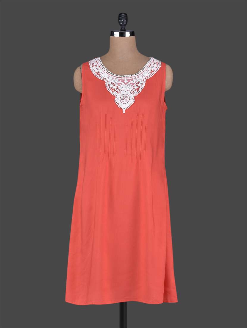 #1 Sleeveless lace neck patch rayon dress & similar products...