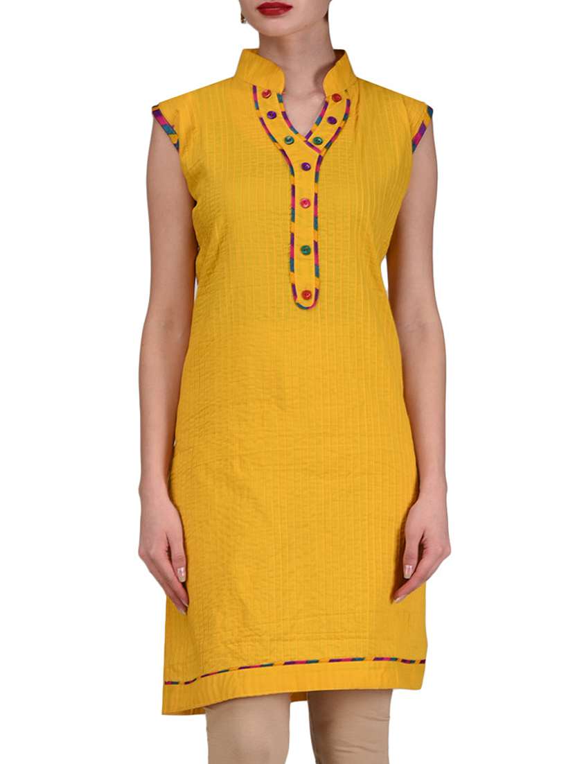 #1 yellow cotton solids sleeveless kurta & similar products...