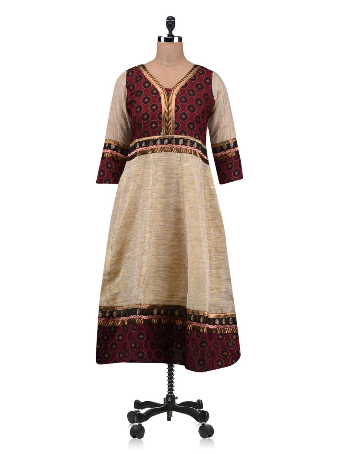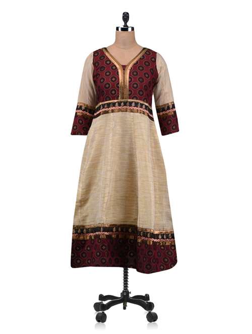 #1 beige & maroon silk anarkali kurta & similar products...