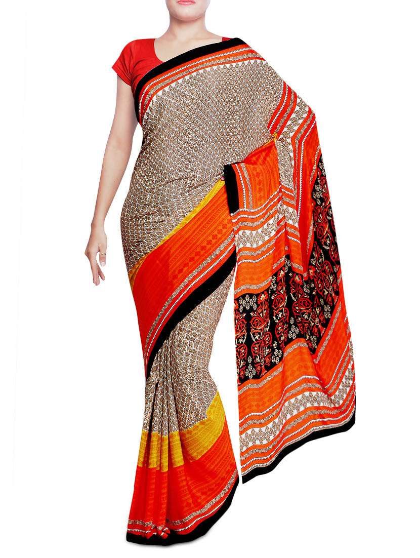 #1 beige & orange kastoori silk printed saree & इसी तरह के उत्पाद...