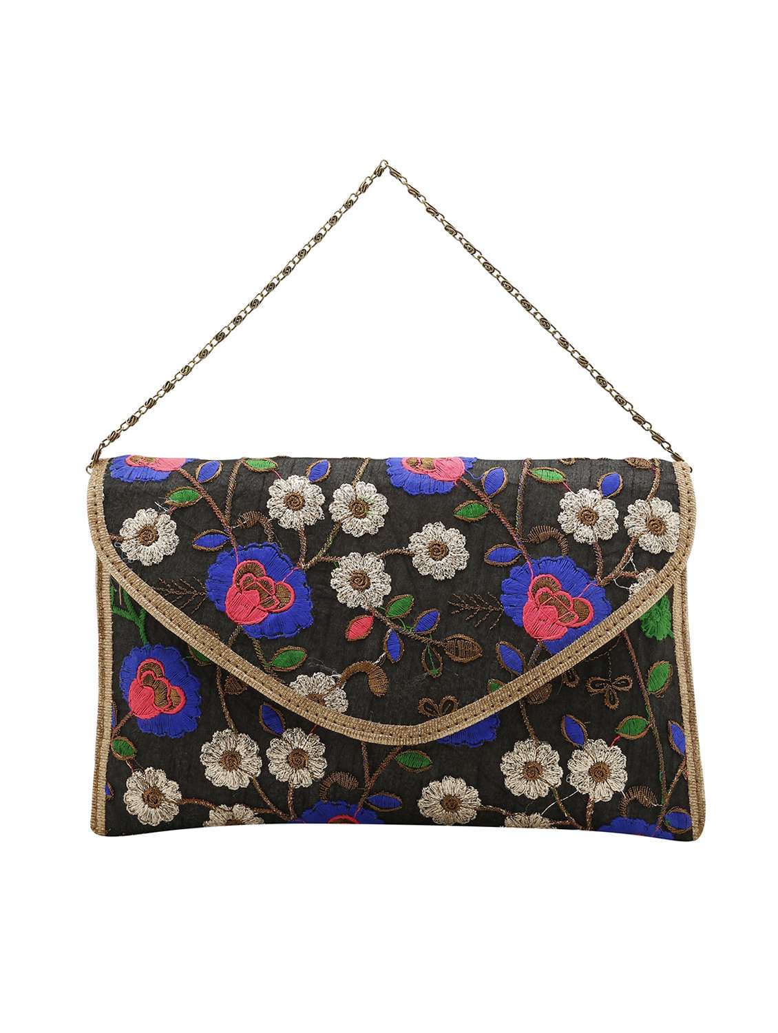 #4 black embroidered faux silk clutch cum sling & similar products...