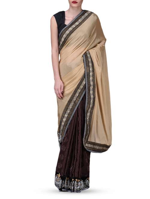 #1 beige embroidered zardosi georgette saree & similar products...