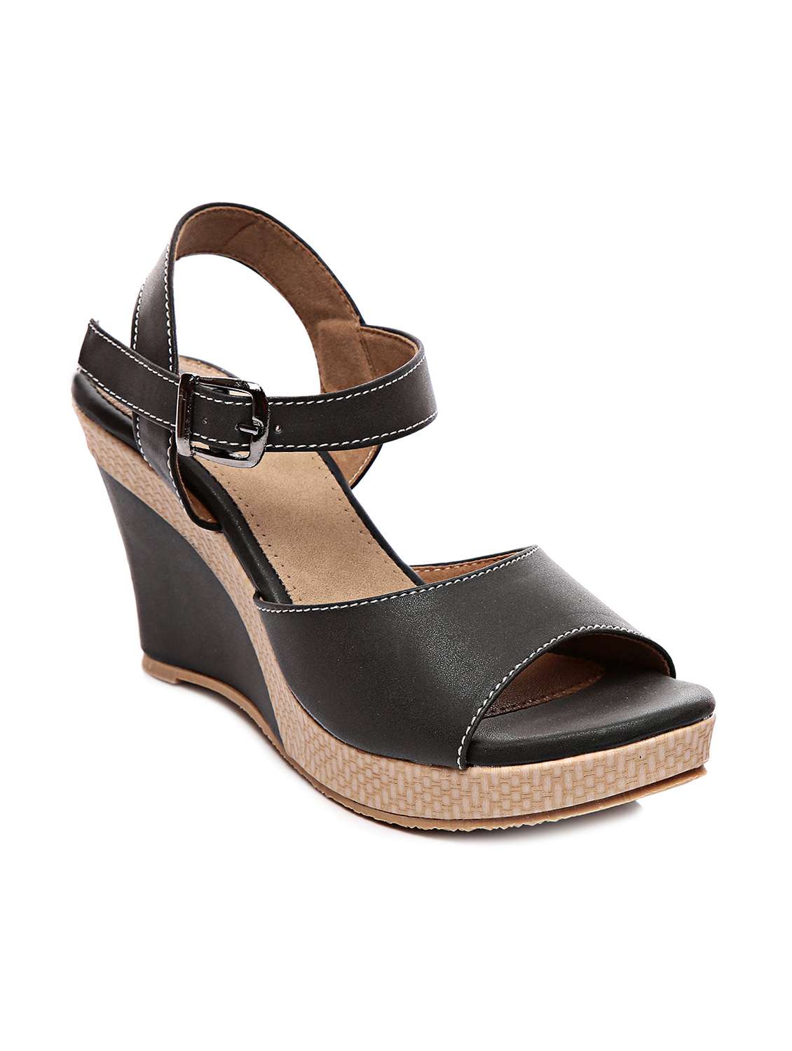 #3 Black buckled faux leather wedges & similar products...