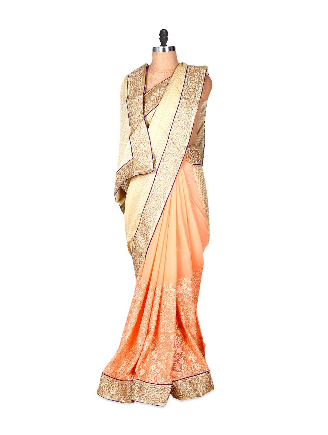 #1 peach and beige zari embellished georgette saree & similar products...